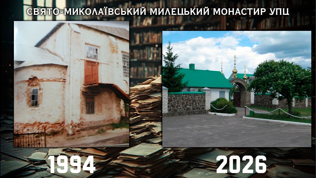 Миколаївська обитель у Мільцах у 1994 та 2026 роках. Фото: «Перший козацький» Миколаївська обитель у Мільцах у 1994 та 2026 роках. Фото: «Перший козацький»