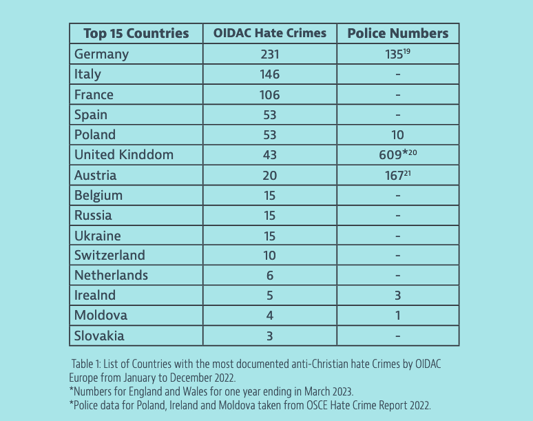 The Austrian non-governmental organization OIDAC (Observatory on Intolerance and Discrimination Against Christians in Europe) published a report highlighting a rise in violence against Christians.