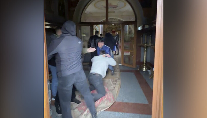 Footage shows that by around 8 a.m., the church doors had already been broken open. One UOC cleric who tried to stop the intruders was violently thrown to the ground using a wrestling move. They also took his phone, which had recorded the breaking and entering.
