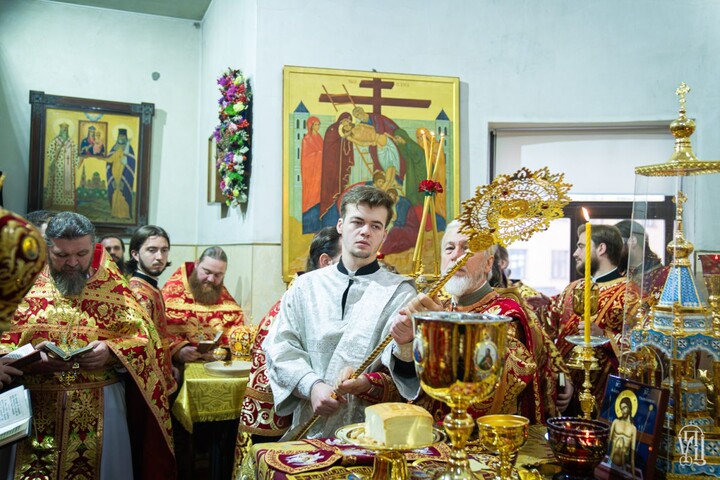 His Beatitude Metropolitan Onuphry ordained Oleksandr Kozar, a fourth-year student of the Kyiv Theological Seminary, to the diaconate. After the Liturgy, the clergy, led by the Primate, performed the rite of glorification, after which His Beatitude congratulated all those present on the feast.