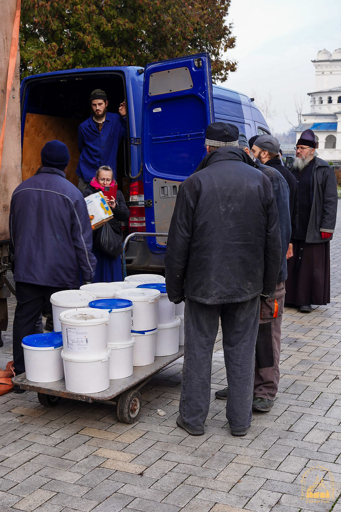 Special words of gratitude were addressed by the volunteers to the Bukovynian entrepreneurs who regularly donate part of their products to the Lavra: farmer S.o.G.. Vitaliy, S.o.G. Ivan, and S.o.G. Mykhailo "for their sacrificial love for the monks of the much-suffering monastery".