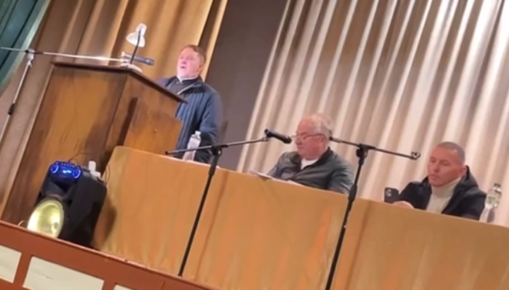Πρωθιερέας Γεώργιος Σικαλιούκ μίλησε στη συνάντηση σχετικά με τη μεταφορά του ναού στο Κουζμίνο.