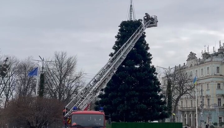 Οι ντόπιοι κάτοικοι ισχυρίζονται ότι οι αρχές αποσυναρμολογούν το Χριστουγεννιάτικο δέντρο για να ταπεινώσουν τους πιστούς της Ουκρανικής Ορθόδοξης Εκκλησίας (УПЦ).