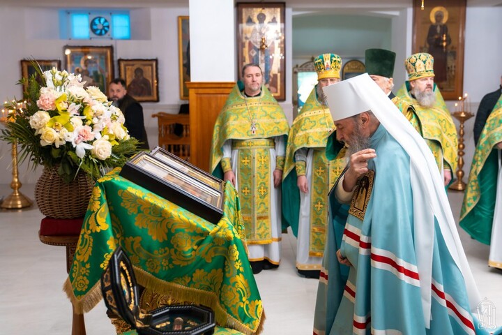Κατά τη Λειτουργία αναπέμφθηκαν προσευχές για την ειρήνη στην ουκρανική γη, για την ευλογία του Κυρίου στον ουκρανικό λαό, για την απαλλαγή από τον εχθρό και για τους στρατιώτες-προστάτες. Κατά τη διάρκεια της ακολουθίας ο Μακαριώτατος Μητροπολίτης Ονούφριος χειροτόνησε σε διάκονο τον Αρτέμιο Ναδβόρνι, ο οποίος θα υπηρετήσει στον ναό προς τιμήν του οσίου Θεοδώρου του Οσίου στο Κίεβο.