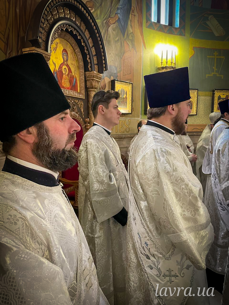 Στον Προκαθήμενο της Ουκρανικής Ορθόδοξης Εκκλησίας συλλειτούργησαν επίσης ο διαχειριστής των υποθέσεων της Ουκρανικής Ορθόδοξης Εκκλησίας, Μητροπολίτης Μπορίσπολ και Μπροβαρί Αντώνιος, ο Μητροπολίτης Βασιλκόφ Ιωάσαφ, ο Αρχιεπίσκοπος Ζγκούροβ Αμβρόσιος, ο Αρχιεπίσκοπος Ιρπέν Λαύρος, ο Αρχιεπίσκοπος Μποροντιάνσκ Μάρκος, ο Επίσκοπος Μπαρίσεβ Φιλάρετος, το κλήρος της Λαύρας των Σπηλαίων του Κιέβου και πολυάριθμοι ιερείς της Ουκρανικής Ορθόδοξης Εκκλησίας.