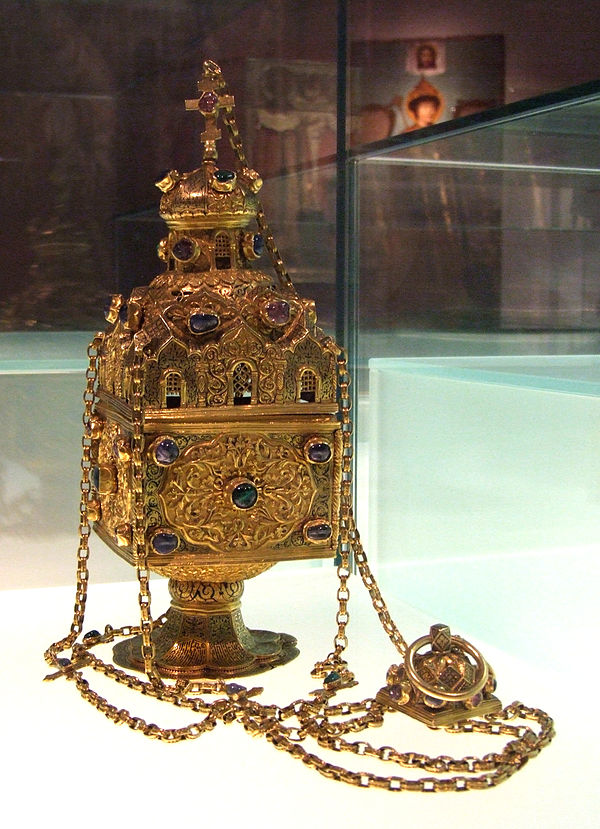 Еще житие папы Сергия (687-701 гг.) рассказывает нам, как большое подвесное серебряное кадило было установлено перед иконой апостола Петра и воскурялось во время служения мессы. Сосуды подобного размера и массы можно увидеть и сейчас.