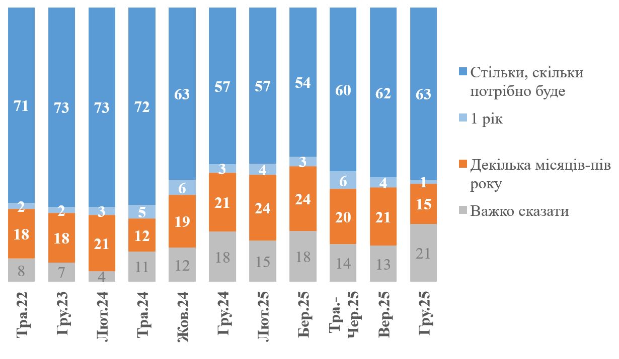 Согласно цифрам КМИС, 63% украинцев готовы терпеть войну «столько, сколько потребуется». При этом, как уверяют социологи, с сентября цифра безусловной поддержки войны только выросла.