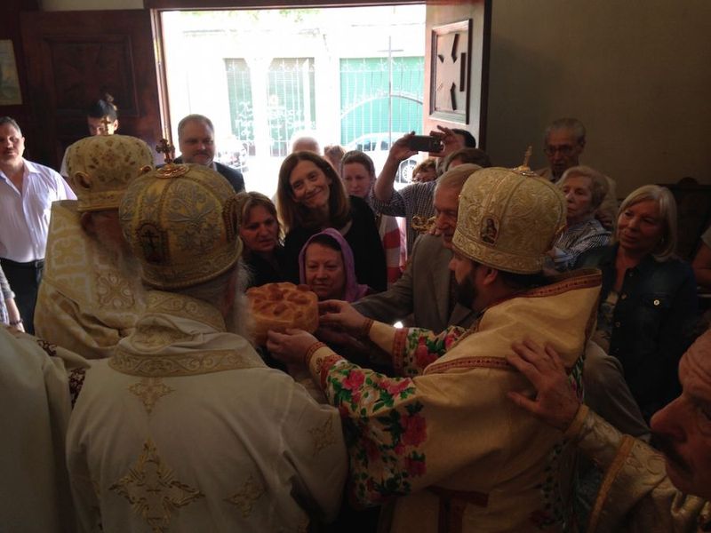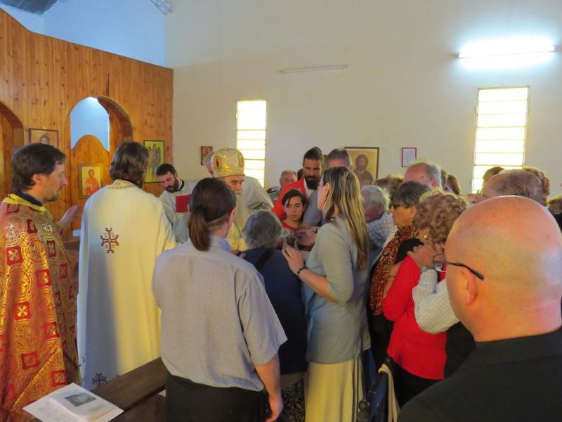 Первую Литургию в нем отслужили митрополит Амфилохий вместе с архимандритом Кириллом (Бойович), архиерейским наместником в Аргентине и настоятелем сербского православного прихода в Буэнос-Айресе, настоятелем монастыря Серафима Саровского иеромонахом Давидом (Лестани), священниками православных приходов из Аргентины и Бразилии, многочисленных верующих из Ла-Платы и Буэнос-Айреса.