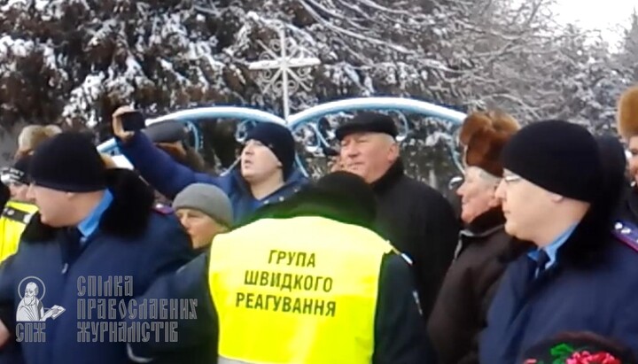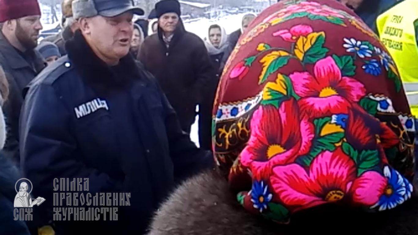 Полиция, прибывшая по вызову общины УПЦ, пыталась убедить представителей КП пропустить православных верующих в церковь, однако эти попытки закончились безрезультатно.