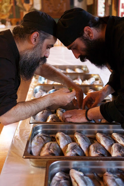 По традиции, на Афоне Благовещение Пресвятой Богородицы празднуется особо: во всех монастырях, скитах и келиях служатся многочасовые службы.