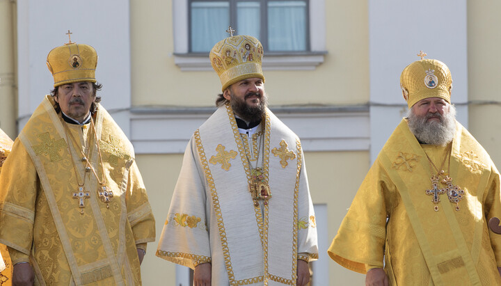 К 12:00 крестоходцы подошли к площади, где встретились с малым крестным ходом, который прошел из Свято-Троицкого собора с мощами святого Александра Невского.