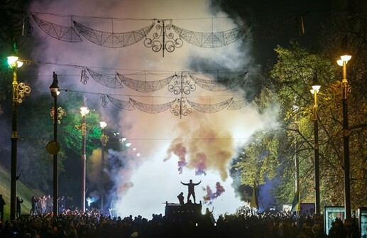 Около 5 тысяч активистов Гражданского корпуса «Азов», общественной организации «С14», Добровольческого украинского корпуса «Правый сектор» собрались на площади у памятника «Родина-мать» для участия в «Марше Нации».