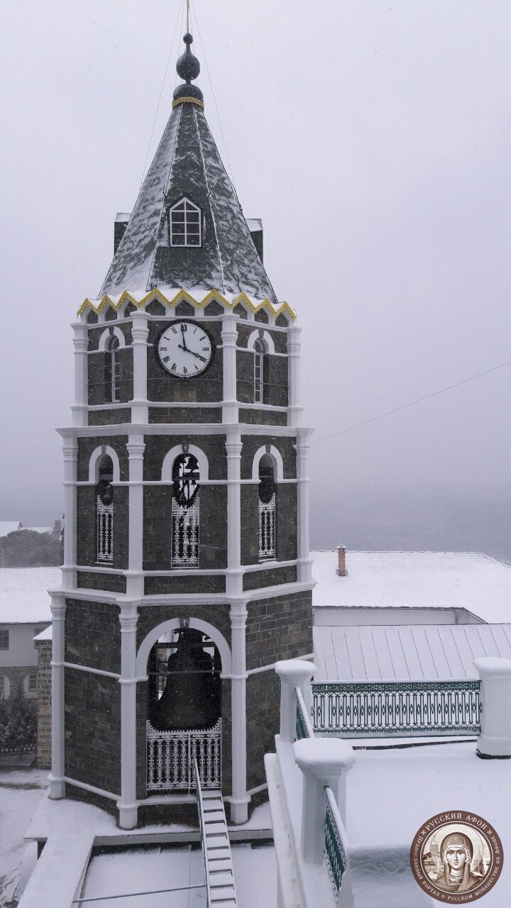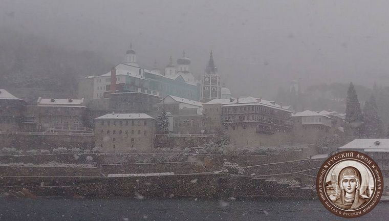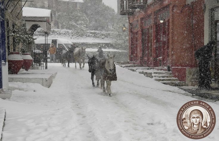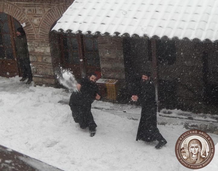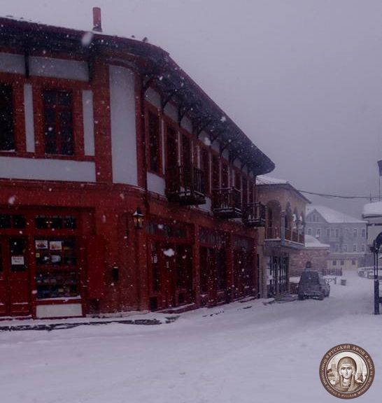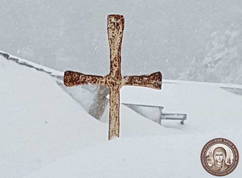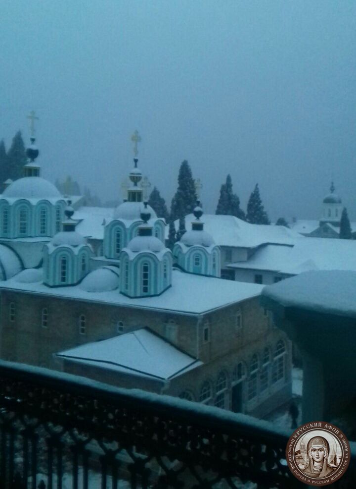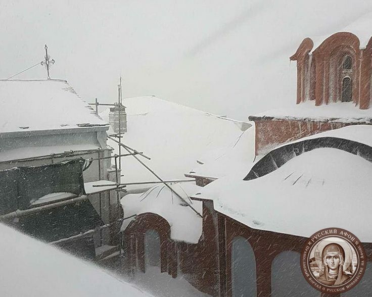 Святогорцы говорят, что за последние годы подобный сильный снегопад на Афоне наблюдается впервые. Снегом замело все горные тропы, так что ходить в горах сейчас невозможно и опасно для жизни. Замело и святогорские дороги, так что во многих местах передвижение по Афону серьезно осложнено.