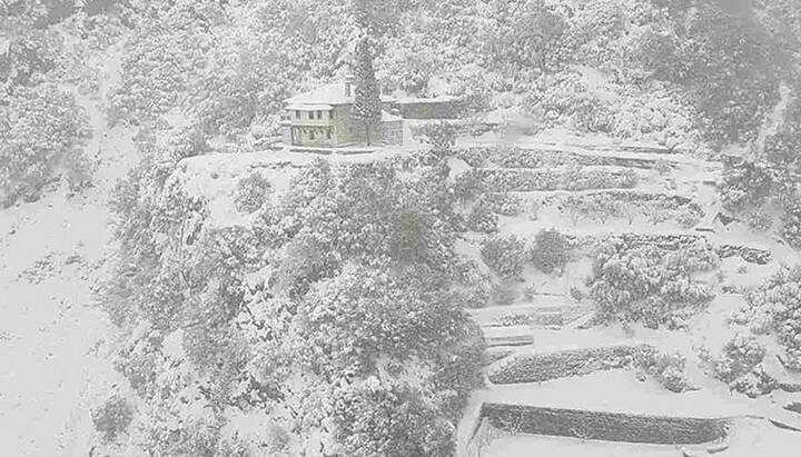 Небывалый снегопад окутал Святую Гору на Рождество: монахи думают, это – подтверждение верности юлианского календаря (ФОТО)