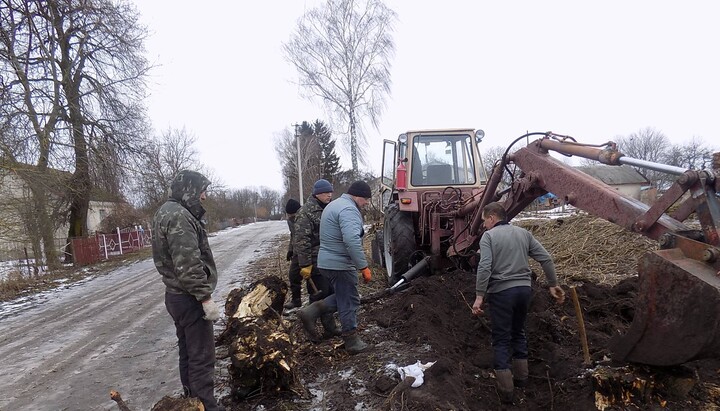 «Вместе с прихожанами УПЦ снова вышли на улицу, чтобы расчистить территорию для начала строительства храма. Много лет здесь никто не жил, поэтому было много работы. Мы уже расчистили территорию от сорняков и деревьев. Осталось только вывести глину, оставшуюся от старого дома, который когда-то был на этом месте», – рассказывает протоиерей Сергий Гладун.