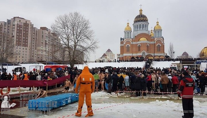 Верующие Киева с молитвой совершили омовение в Крещенской купели.