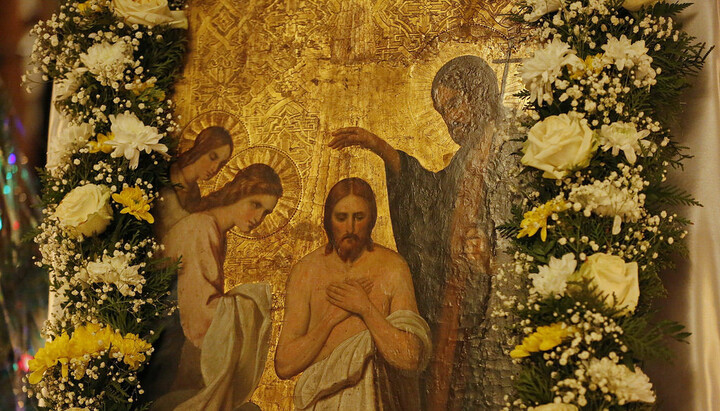 Заканчивая свою речь, перед крестным ходом обратно в Успенский собор, владыка наместник сказал: «Сейчас не просто крестный ход пойдет. Сейчас незримо Господь будет идти мимо вас со Своею силою, которая называется благодатью Духа Святаго, и эта сила будет осенять каждого из вас. Никто не уйдет неутешен, никто не уйдет с неосвященною водой: Господь каждого посетит, каждому воду освятит. Но не забывайте, что Господь в мир пришел не только воду освящать, но освятить каждого из нас».