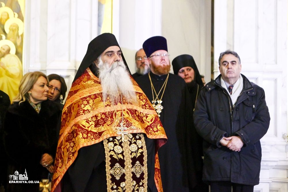 В своем архипастырском слове Владыка сказал, что «сегодня у нас, собравшихся здесь, в духовном сердце Одессы – возрожденном Спасо-Преображенском соборе, как и у всех одесситов, большая радость. Со Святой Афонской Горы, удела Пресвятой Богородицы, из монастыря Святого Павла в наш богохранимый град прибыла великая святыня – честная глава святого великомученика и целителя Пантелеимона, которая хранится там на протяжении многих веков».
