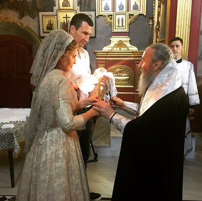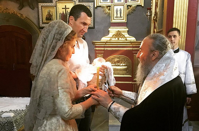 Боксер Владимир Кличко и супруга Виктора Медведчука крестили девочку в Киевской Лавре