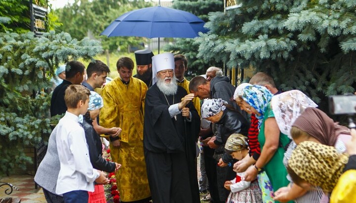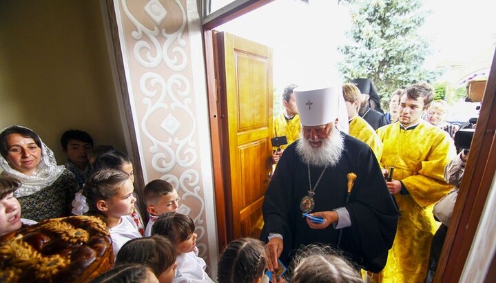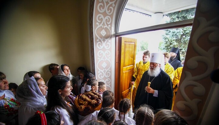 У въезда в село высокого гостя встречали хлебом-солью представители местных органов власти, а у входа в храм его приветствовали воспитанники воскресной школы, которых Высокопреосвященнейший Агафангел благословил Касперовскими иконками Божией Матери.