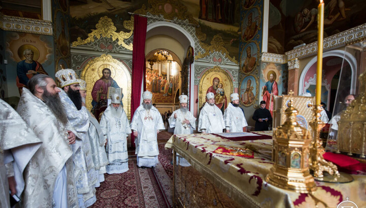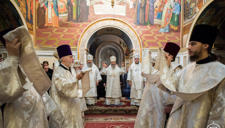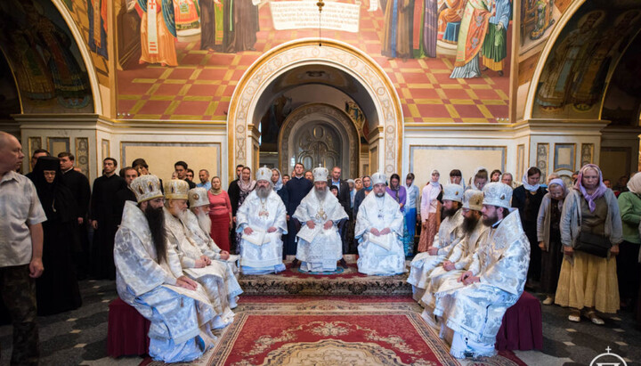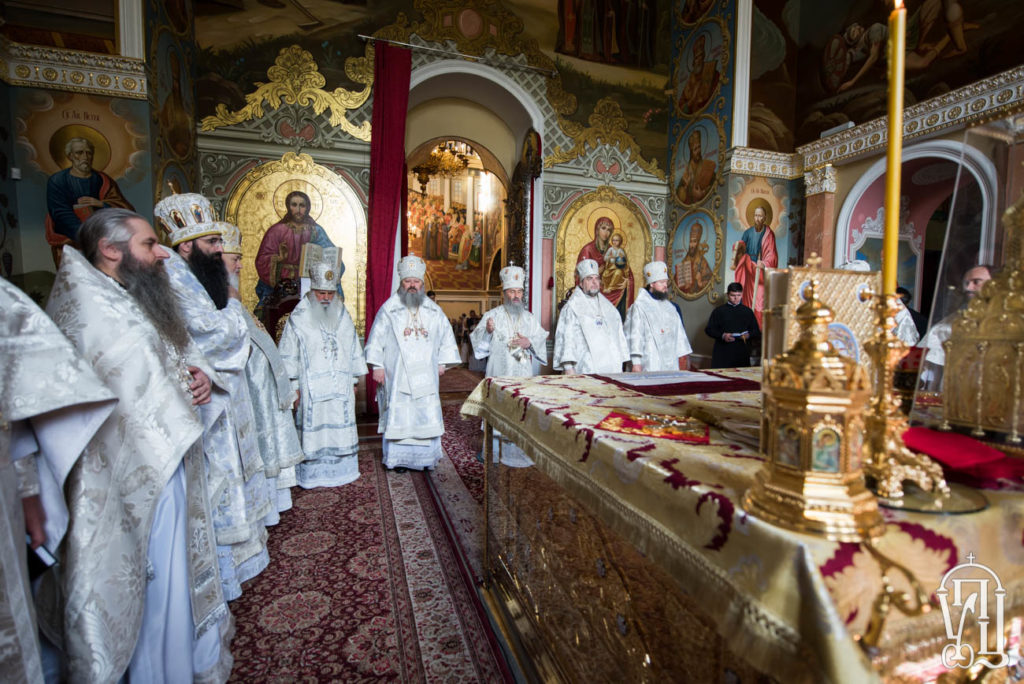 За Литургией были вознесены сугубые молитвы о мире в Украине и об упокоении души почившего Предстоятеля Украинской Православной Церкви.
