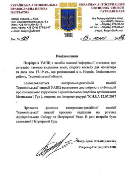 Контрольно-ревизионной комиссии УАПЦ патриархия поручила «установить достоверность публикации о бывшем управляющем Тернопольской епархией архиепископе Мстиславе (Гуке) на интернет-ресурсе ТСН.UA».