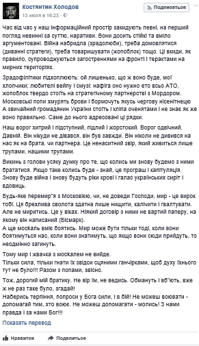 Капеллан также призвал своих читателей к участию в боевых действиях: «Наберись терпения, попроси у Бога силы, и в бой! Не можешь воевать – помогай тем, кто воюет. Не можешь помогать – молись!»