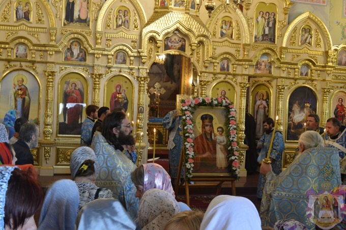 Образ Матери Божьей встречали цветами, песнопениями и молитвами. В соборе Рождества Христова был отслужен молебен с акафистом и совершено всенощное бдение. Присутствующие были помазаны святым елеем, могли вознести молитвы к Матери Божией перед Ее чудотворной иконой и приложиться к святыне.
