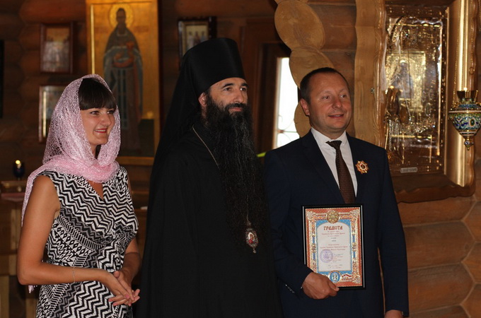 После награждения церковным орденом владыка Варсонофий вручил также грамоту благотворителю, поблагодарил за активное участие и помощь людям с ограниченными возможностями. На память о событии была сделана фотография вместе с руководителем школы «Слышать сердцем» Анной Блощинской.