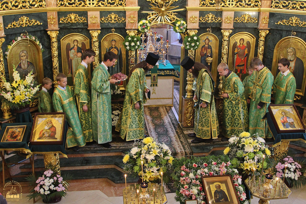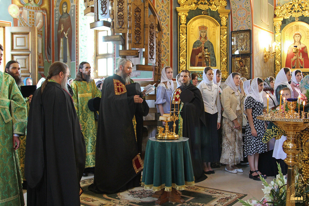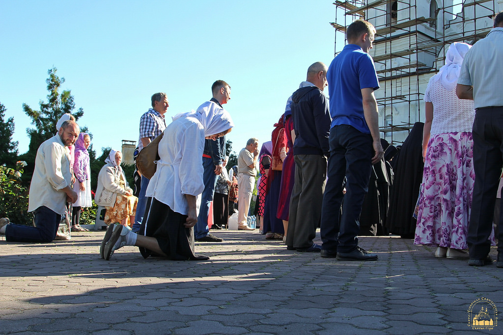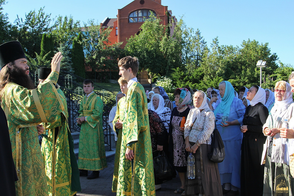 По окончании водосвятия в верхнем Свято-Скорбященском храме читали часы и была отслужена поздняя Божественная литургия. На службе престольного дня молилось около 300 верующих из близлежащих городов и поселений, много паломников было из Харькова и Славянска.