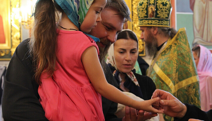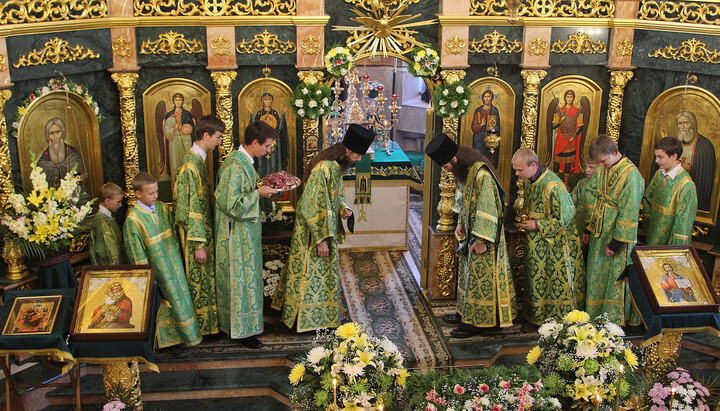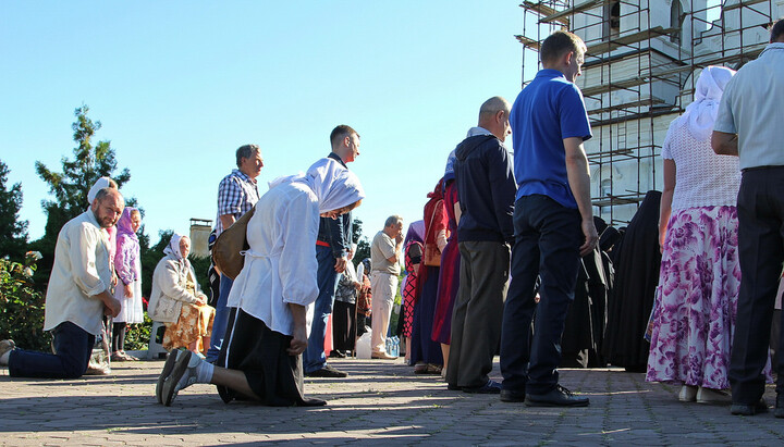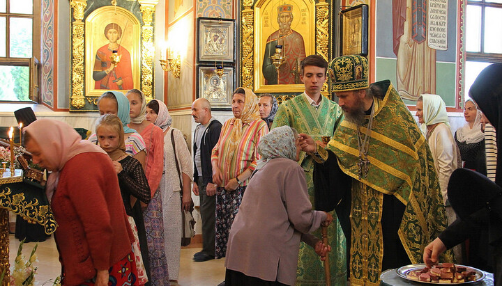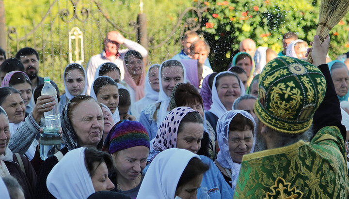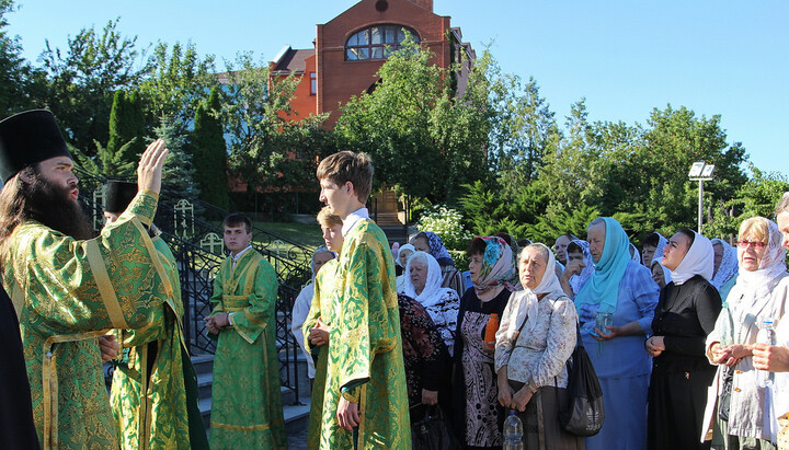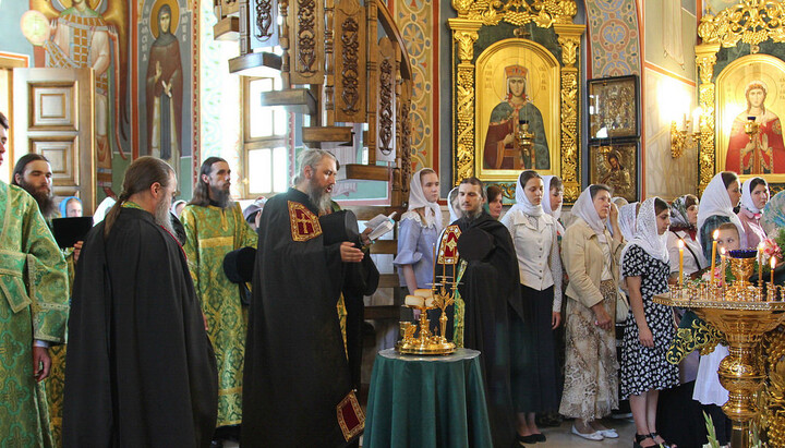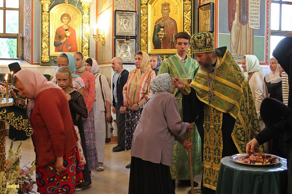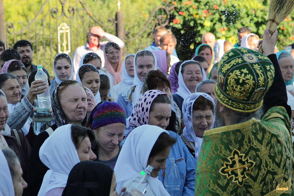 По окончании водосвятия в верхнем Свято-Скорбященском храме читали часы и была отслужена поздняя Божественная литургия. На службе престольного дня молилось около 300 верующих из близлежащих городов и поселений, много паломников было из Харькова и Славянска.