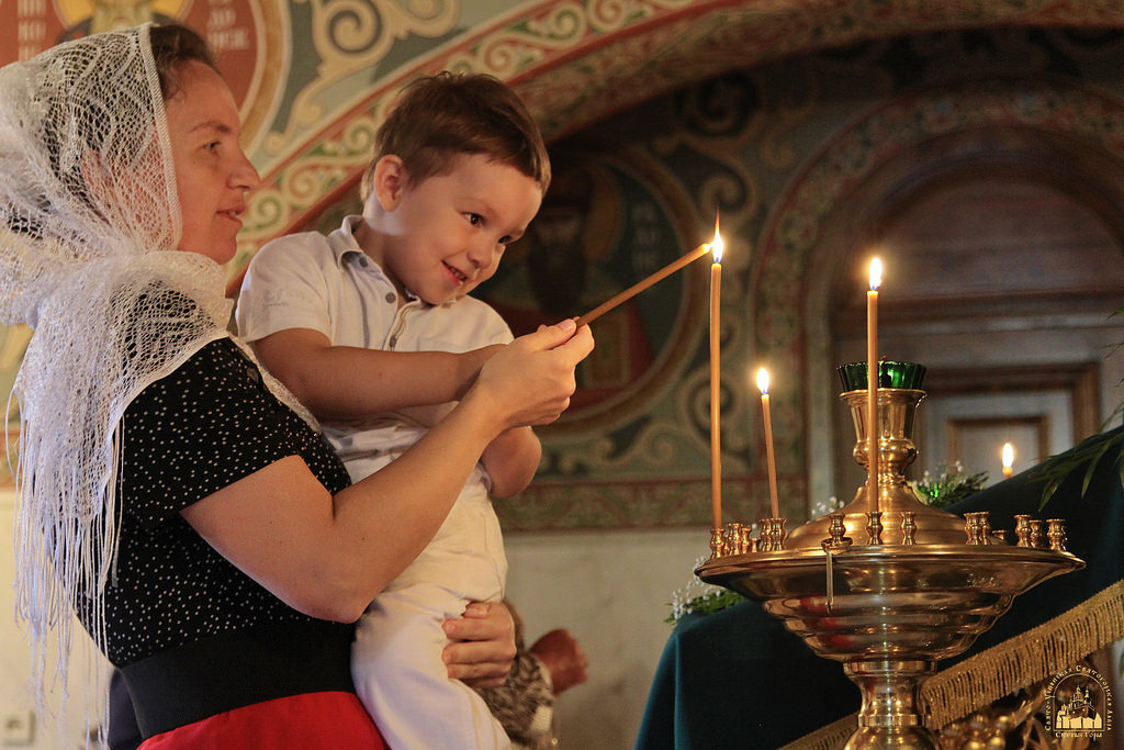 Во время целования креста все молящиеся получили в подарок небольшую икону преподобного Сергия и были приглашены на праздничную трапезу.