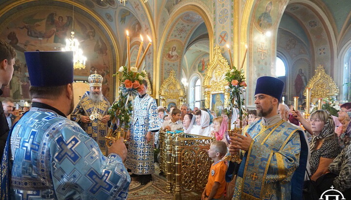 По завершении богослужения Блаженнейший Митрополит Онуфрий поздравил правящего архиерея Изюмской епархии архиепископа Изюмского и Купянского Елисея со всеми знаменательными событиями и 10-летним юбилеем его архиерейского служения. После чего Предстоятель вручил церковные награды тем, кто потрудился для развития епархии.