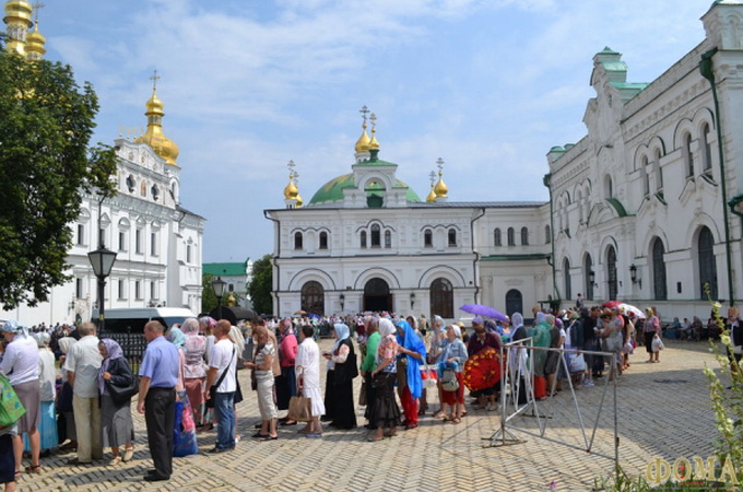 11 ликов — три из киевских монастырей и восемь - из разных епархий Украины —приняли участие в молебне на Владимирской горке и Крестном ходе в честь Дня Крещения Руси. 27 июля, после окончания масштабного молитвенного шествия (около 15.00) образа были внесены в Трапезный храм преподобных Антония и Феодосия Печерских.