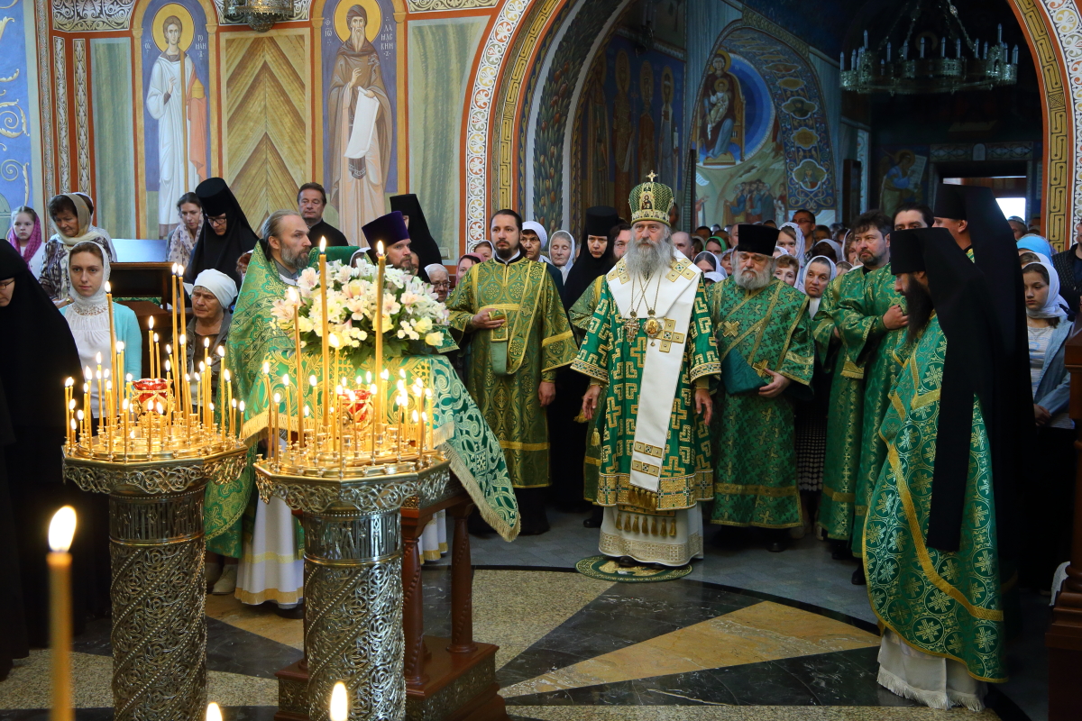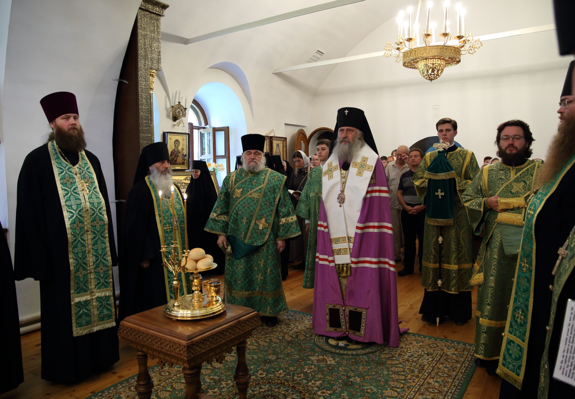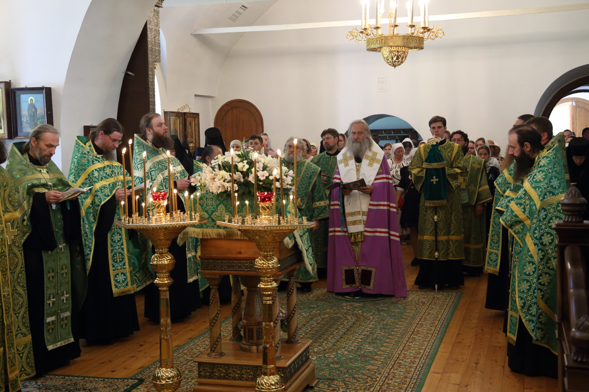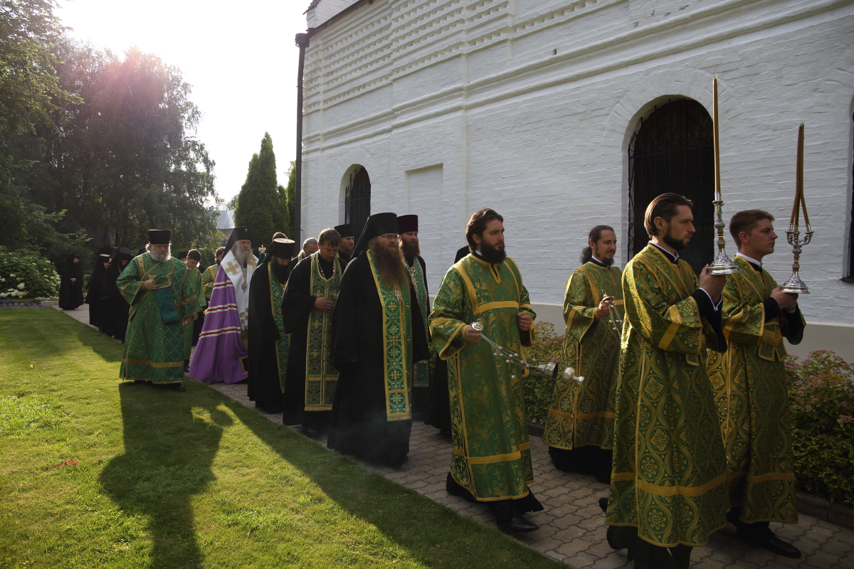 Поздняя Литургия совершалась в Троицком храме монастыря, возглавил ее архиепископ Сергиево-Посадский Феогност. Перед началом поздней Божественной литургии у святых врат обители состоялась встреча крестного хода из Троицкого храма города Карабаново.