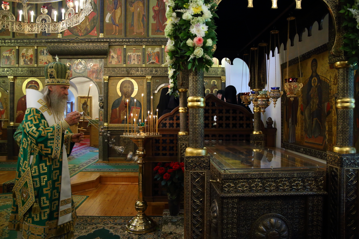 Владыка Феогност поздравил молящихся с престольным праздником обители и обратился к собравшимся с архипастырским словом.