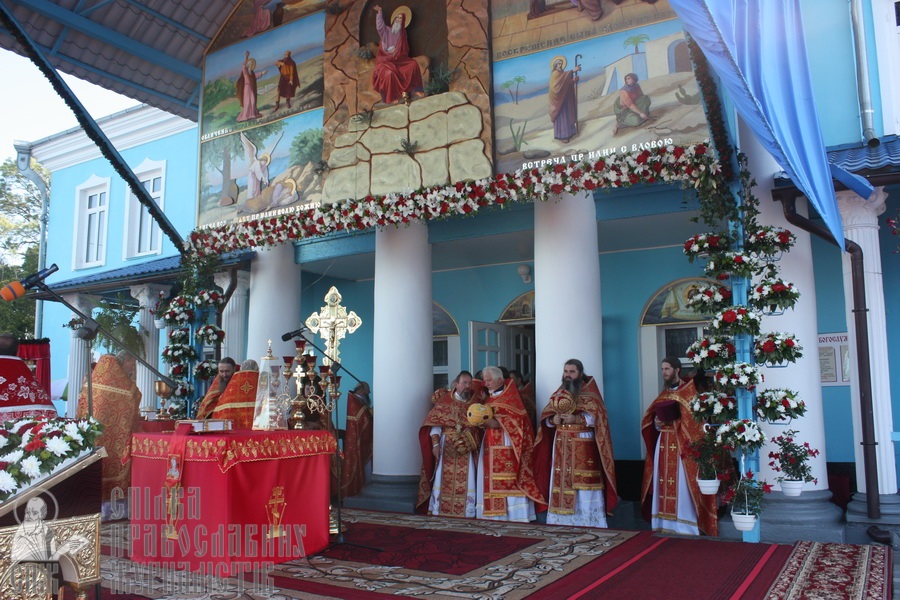Литургию под открытым небом возглавил митрополит Ровенский и Острожский Варфоломей в сослужении прибывших владык: Елиферия, архиепископа Чинкенского и Тарасского (Казахстан), Гурия, Вениамина, епископа Хотинского, Александра, архиепископа Городницкого.