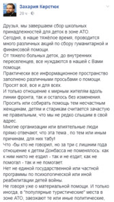 «За три с лишним года отношение к детям Донбасса не поменялось: как к ним никто не ездил – так и не ездит, как не помогал – так и не помогает. Нет ни единой государственной или частной программы по психологической или иной реабилитации детей войны», – подчеркнул он, – «не говоря уже о материальной помощи».