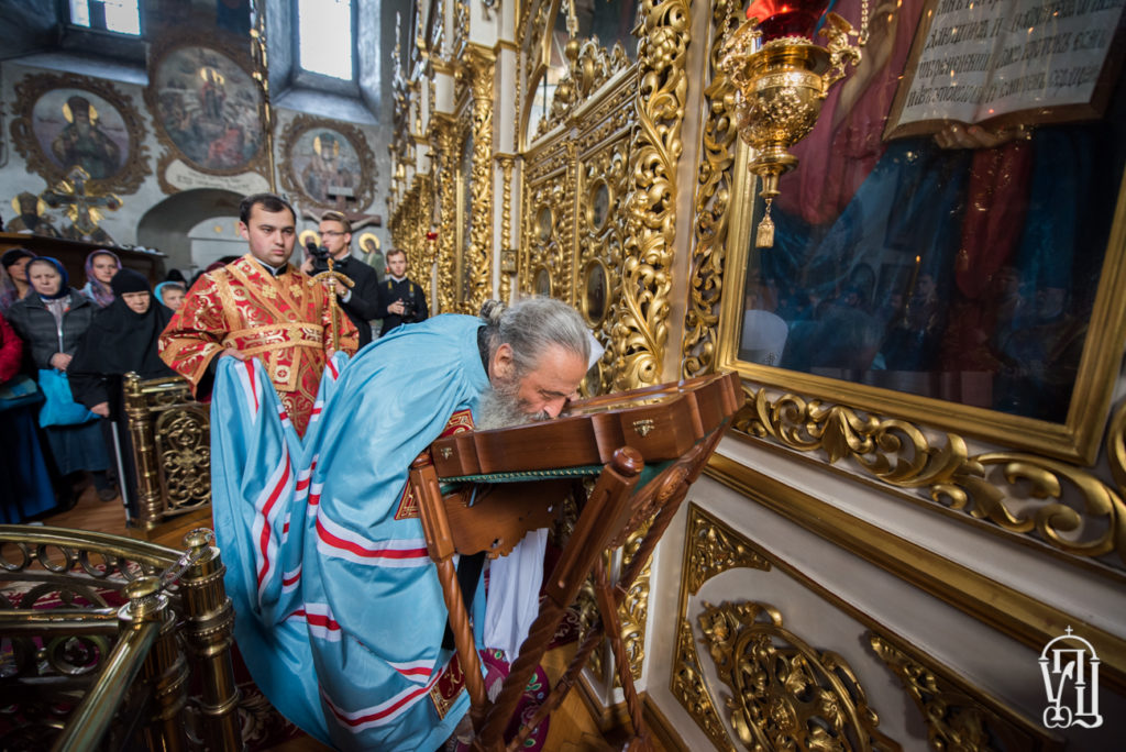 Блаженнейший владыка окропил всех, кто собрался на молитву в обители, а особенно детей, которые пришли помолиться перед началом учебного года.