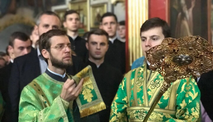 Перед началом учебного года Предстоятель УПЦ возглавил торжественный молебен, после которого присутствующие поклонились мощам покровителя Академии – преподобному Нестору Летописцу.