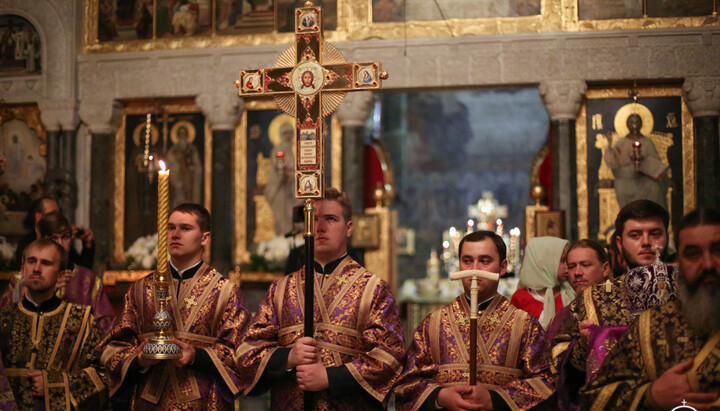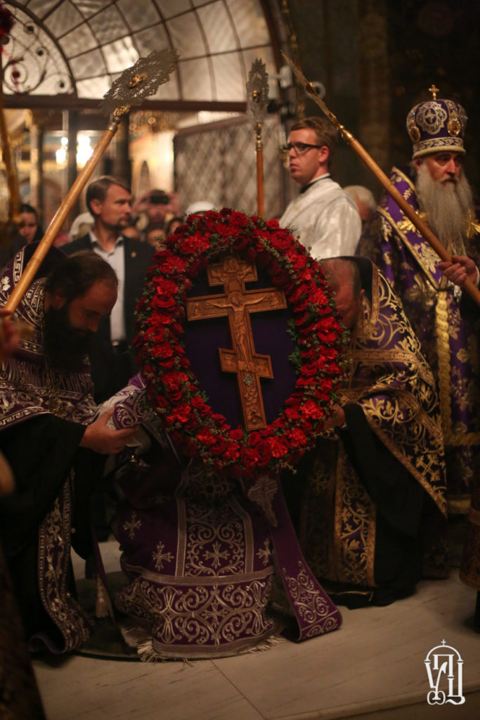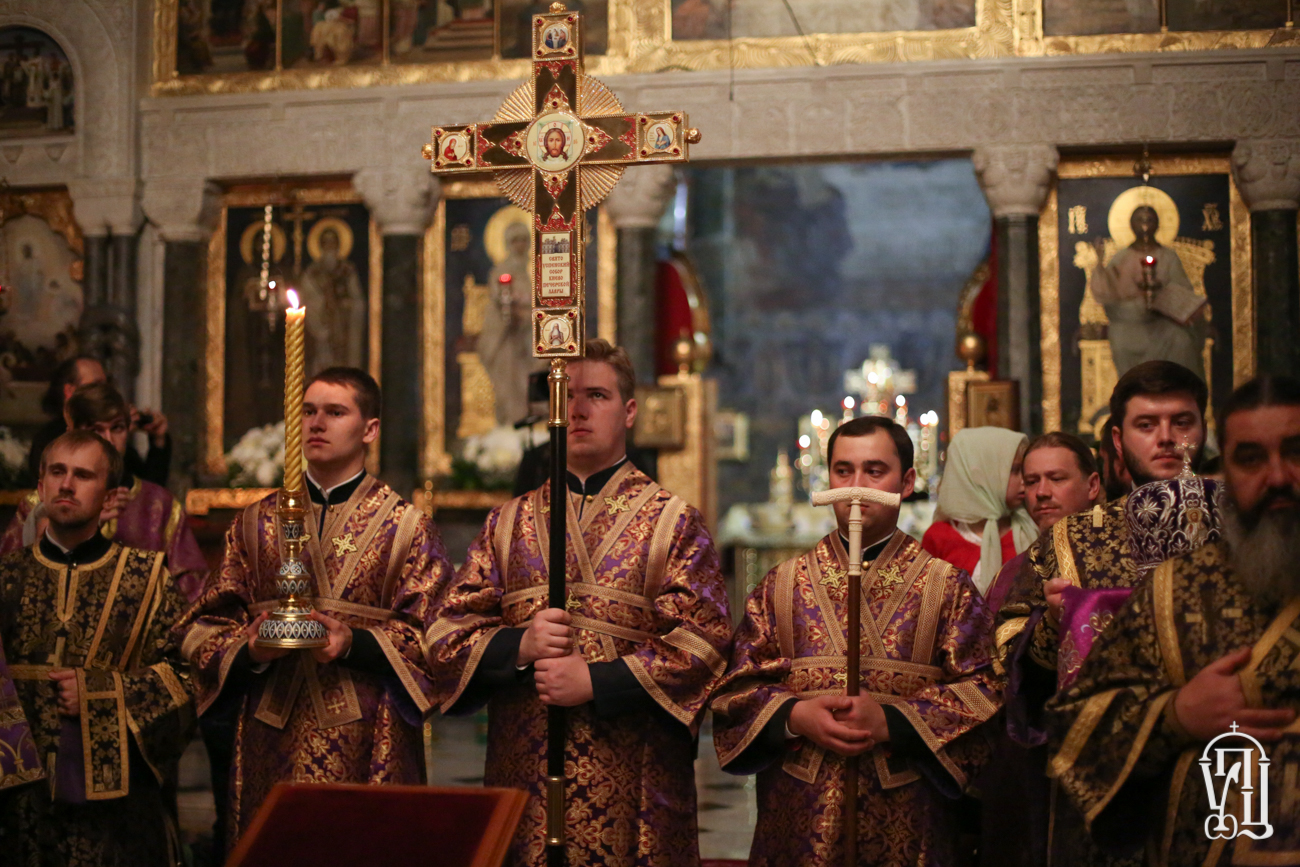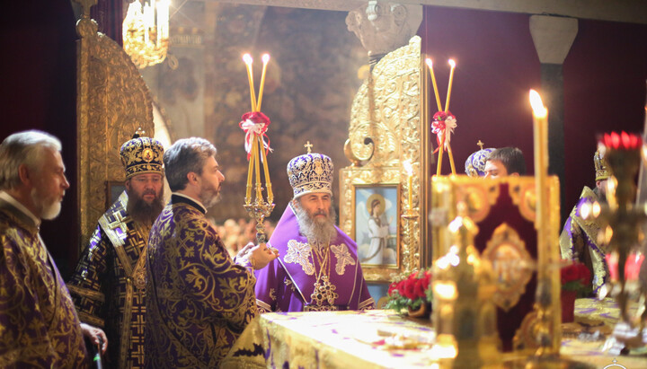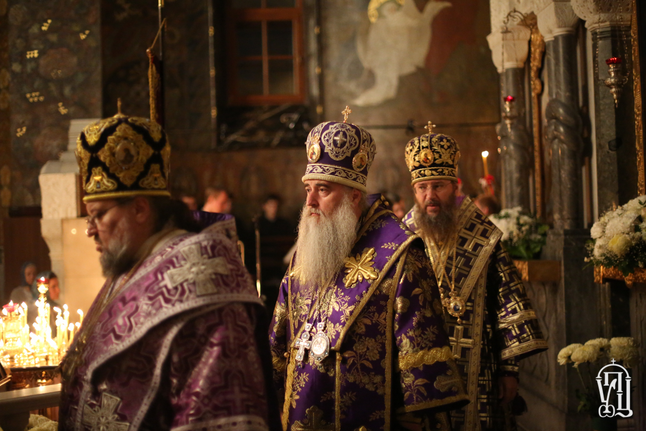 Накануне Блаженнейший Владыка возглавил всенощное бдение с чином Воздвижения Креста в Трапезном храме преподобных Антония и Феодосия Свято-Успенской Киево-Печерской лавры.