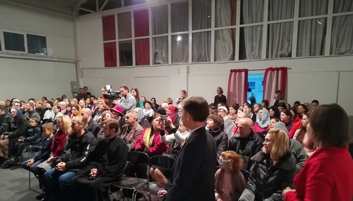 В сравнительно небольшом зале галереи собралось рекордное количество гостей - более 270 человек. Перед началом просмотра к собравшимся обратился Председатель общины Кафедрального собора УПЦ епископ Бородянский Варсонофий. Владыка передал благословение от Предстоятеля УПЦ, настоятеля Кафедрального собора Блаженнейшего Митрополита Киевского и всея Украины Онуфрия, и пожелал, чтобы «сегодняшний просмотр фильма помог в вашей жизни и чтобы вы почерпнули из него много полезного».