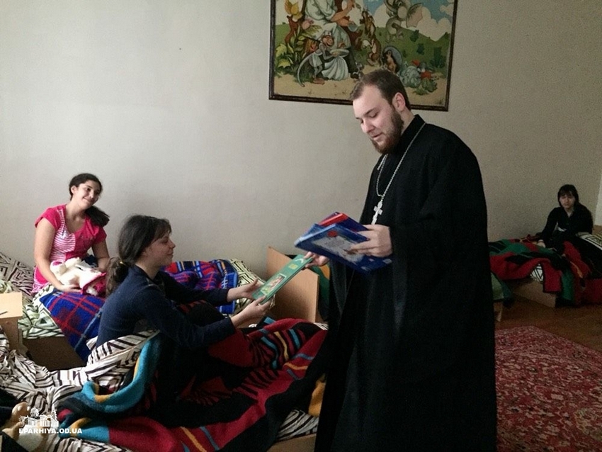 От лица Одесской епархии, отделениям клиники была оказана гуманитарная помощь в виде продуктов питания, одежды, литературы и канцелярии.
