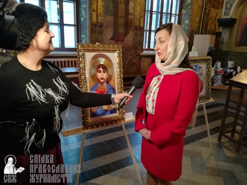 «Чувствую сейчас большой душевный трепет… наша православная святыня... такой храм... Киево-Печерская лавра – место чрезвычайно сильное, это очень важно для меня лично. Я представила 18 картин, из них икон – 15. На каждую икону в среднем уходит от полугода до 3 лет. Обязательно перед началом работы помолюсь, придерживаюсь церковных канонов, как необходимость в иконе. Сначала я сама рисую картину-образ, изучаю историю иконы, а уже потом берусь за иголку с ниткой», – рассказывает Юлия.