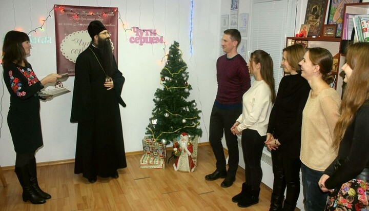 Кульминацией мероприятия в галерее «Соборная» стало вручение свидетельств. По многолетней традиции слушателям курсов жестового языка свидетельства вручает епископ Бородянский Варсонофий, викарий Киевской епархии, духовник школы. Владыка Варсонофий сказал напутствующее слово выпускникам и благословил их на добрые начинания.