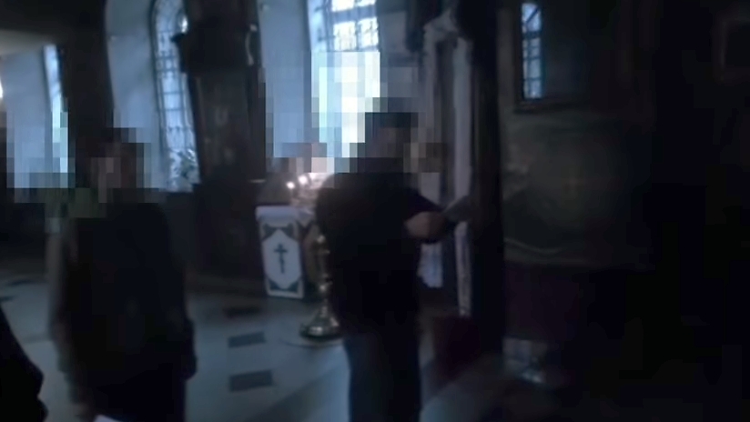 Члены общественной организации «Ліга Сходу» пришли в храм и высказали обвинения в адрес священнослужителя, зачитав строки из «Евангелия от Матфея» об изгнании торговцев из храма. Закончив чтение, молодые люди, лица которых на видео заретушированы, бросили листы со стихами из «Нового Завета» на пол и скрылись.