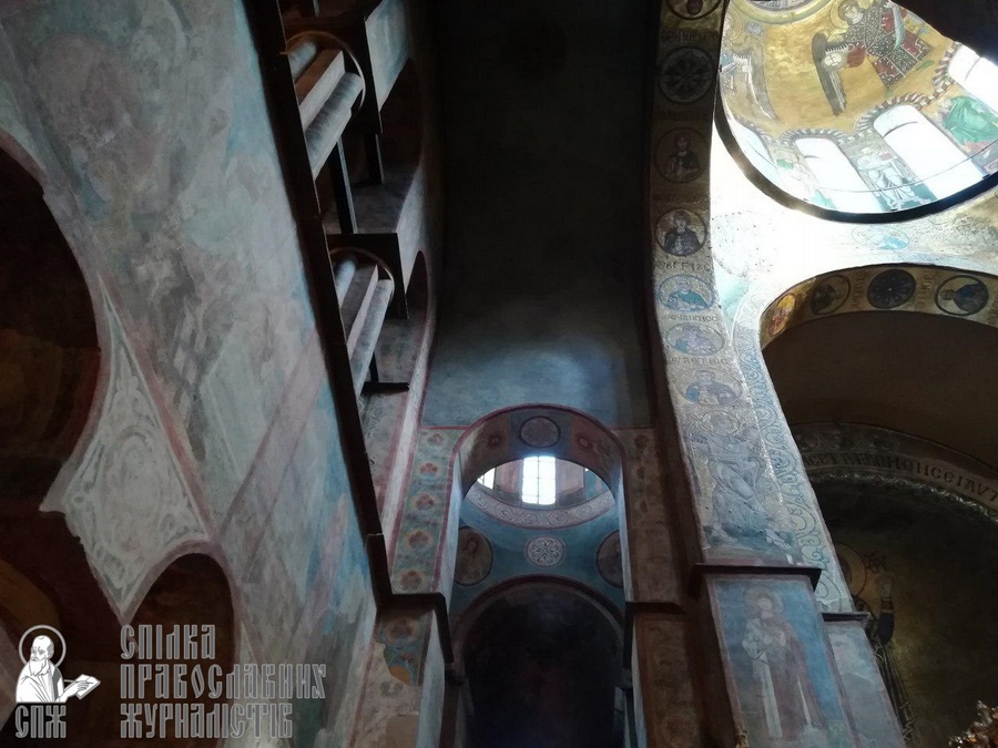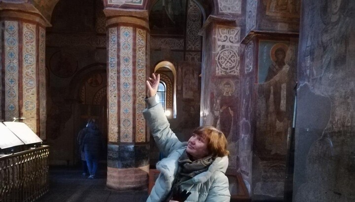 «Собор, заложенный еще в 1011 году князем Владимиром, крестившим Русь, прежде всего славен своими мозаиками и фресками ХІ века, – рассказала Тамара Николаевна. – А в 1953-1956 годах реставраторы руководствовались атеистической идеологией: из церковной живописи имеют ценность только древние фрески и мозаики, поэтому более позднюю живопись закрасили».