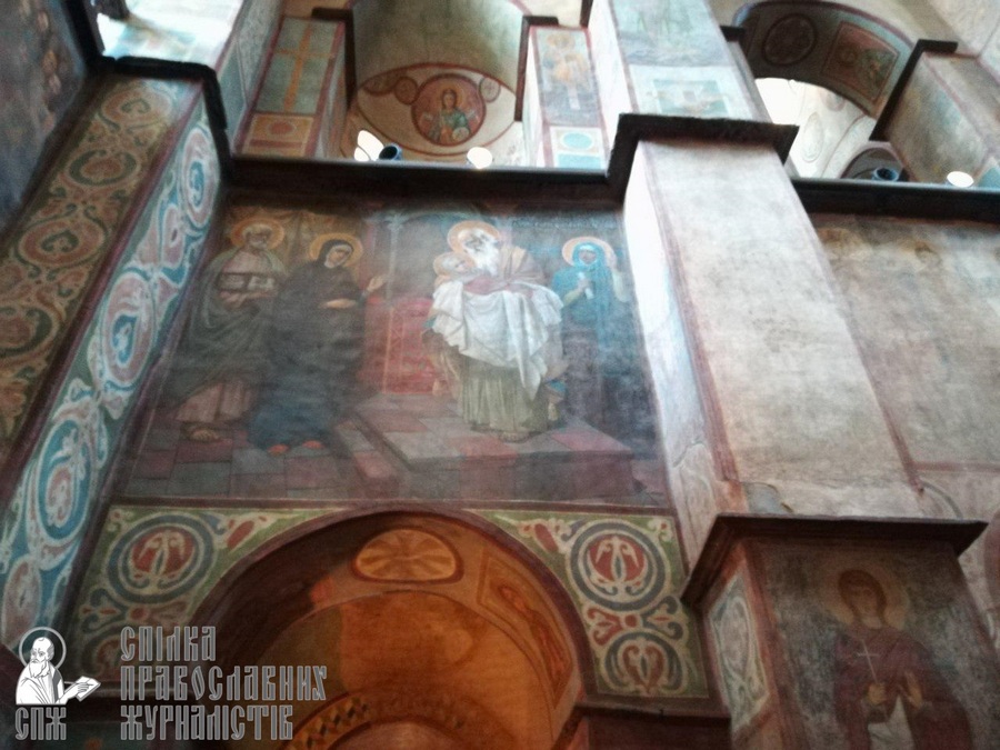 О росписи нигде в литературе нет упоминаний, сменились поколения реставраторов и о существовании этих произведений XVIII-XIX веков забыли. Тамара Рясная напомнила, что этот храм пережил страшное Батыево нашествие и после почти 600 лет не ремонтировался. Собор начали приводить в порядок только при митрополите Петре Могиле в первой половине XVII века, а потом основательно перестроили. К счастью, фрески не уничтожили, а создали в XVIII веке поверх них новую церковную живопись в стиле украинского барокко.