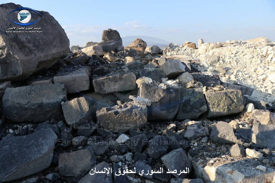 На опубликованных «Сирийским центром мониторинга за соблюдением прав человека» фотографиях видна воронка в центре храмового комплекса и гора щебня на месте, где раньше стояли знаменитые базальтовые львы.
