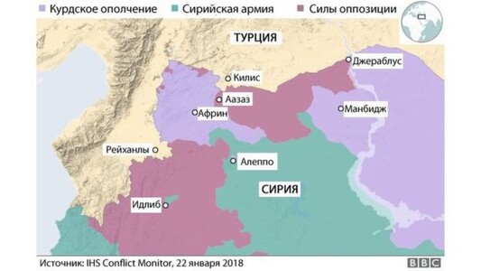 Анкара с 20 января проводит операцию «Оливковая ветвь» против формирований курдов в Африне, которые считает террористическими. Союзниками Турции выступили бойцы оппозиционной правительству Сирии «Сирийской свободной армии».